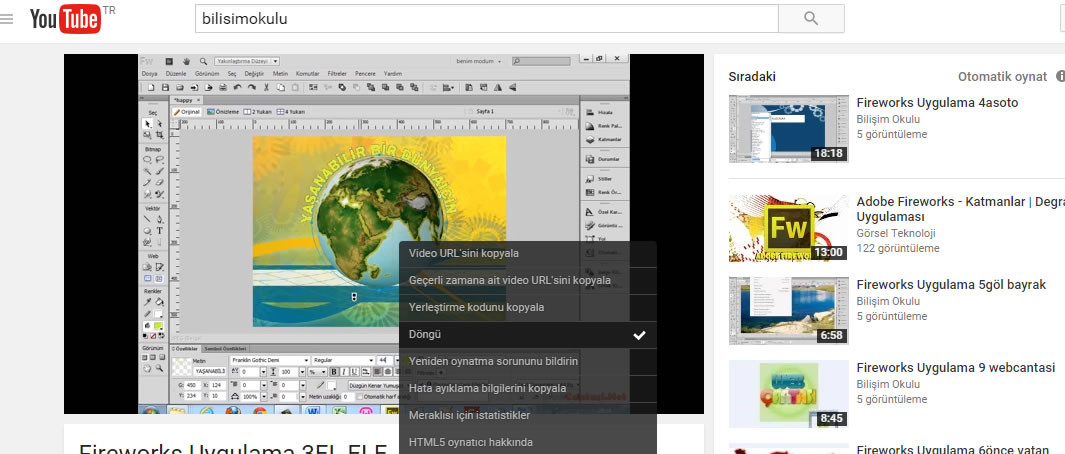 Video uzerinde sağ tuş tıklanarak Döngü seçeneği seçilerek artık basit şekilde yapılmaktadır. Youtube kullanıcılarının isteklerine cevap vererek devamlı kendini güncellemektedir.